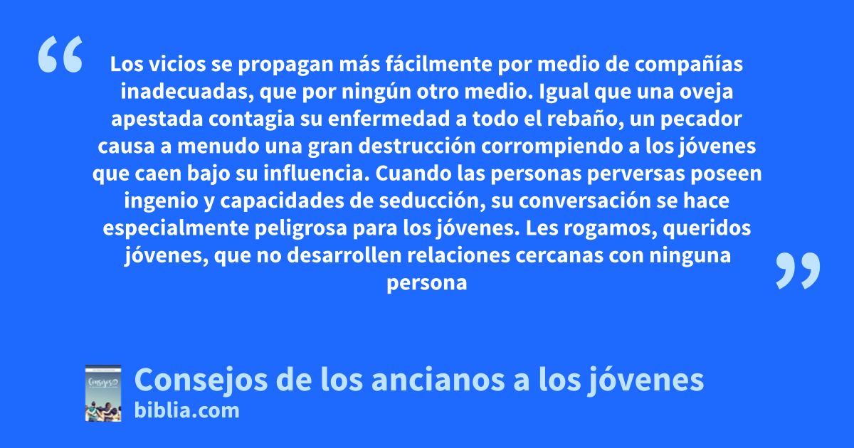 El espíritu de los jóvenes es alegre, su sensibilidad aguda, sus emociones ardientes y sus esperanzas radiantes. La novedad y la variedad de las escenas que se suceden mantienen en ellos un constante entusiasmo. Continuamente hay una mirada hacia el presente y el futuro. En tal sentido, es muy deseable que las lecciones de sabiduría que la experiencia le ha enseñado a las personas mayores estén...