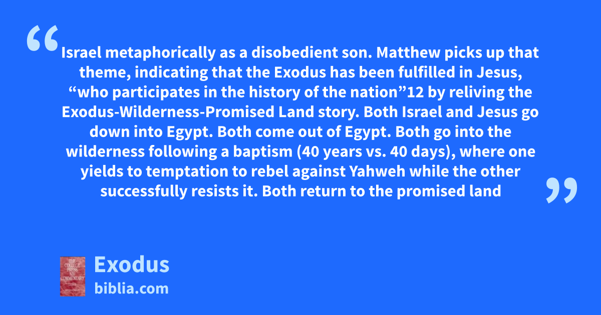 The book of Exodus functions as the sequel to Genesis describing God’s deliverance of the children of Israel and the establishment of a new covenant between God and Israel. The rest of the Old Testament looks back on the exodus of Israel from Egypt as the primary redemptive event in Israel’s history. This primary redemptive event became central to the Hebrew Bible and the New...