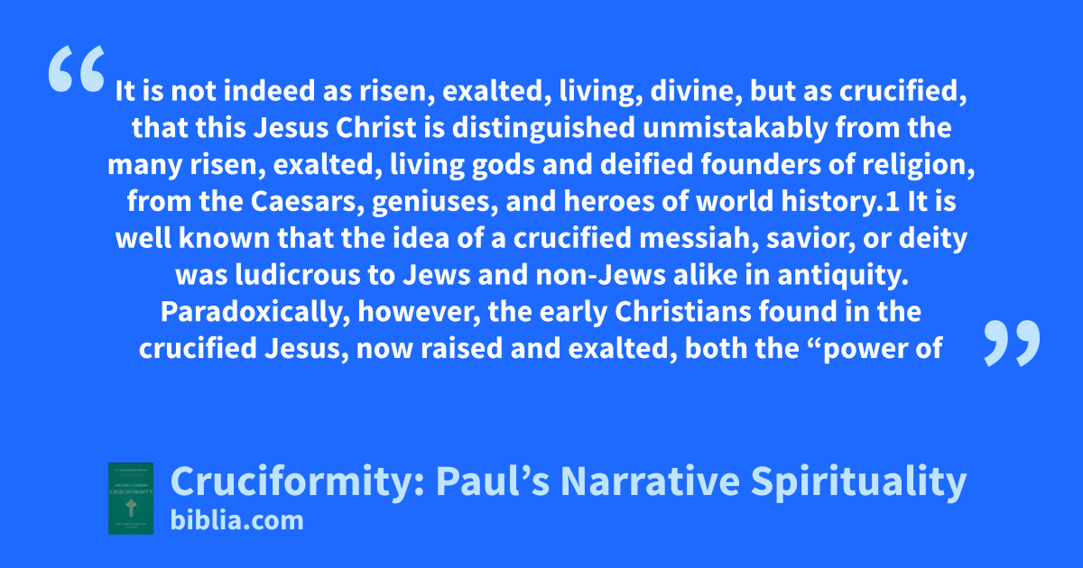 It is not indeed as risen, exalted, living, divine, but as crucified, that this Jesus Christ is distinguished unmistakably from the many risen, exalted, living gods and deified founders of religion, from the Caesars, geniuses, and heroes of world history.1 It is well known that the idea of a crucified messiah, savior, or deity was ludicrous to Jews and non-Jews alike in antiquity. Paradoxically, however, the early Christians found in the crucified Jesus, now raised and exalted, both the “power of