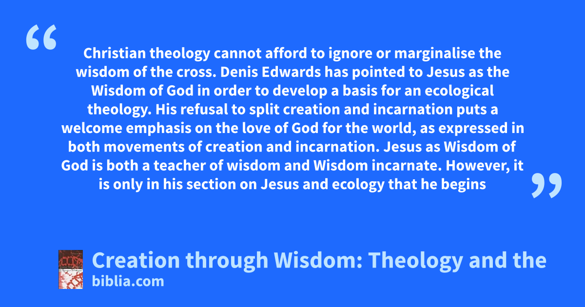 This volume offers a new theology of nature based on wisdom Christology. The author argues that an exaggerated emphasis on mere information has deprived modern science of its capacity to respond adequately to the moral dilemmas resulting from our increased power over nature. Dr. Deane-Drummond proposes a theology of creation that is in tune with recent developments in biological science,...
