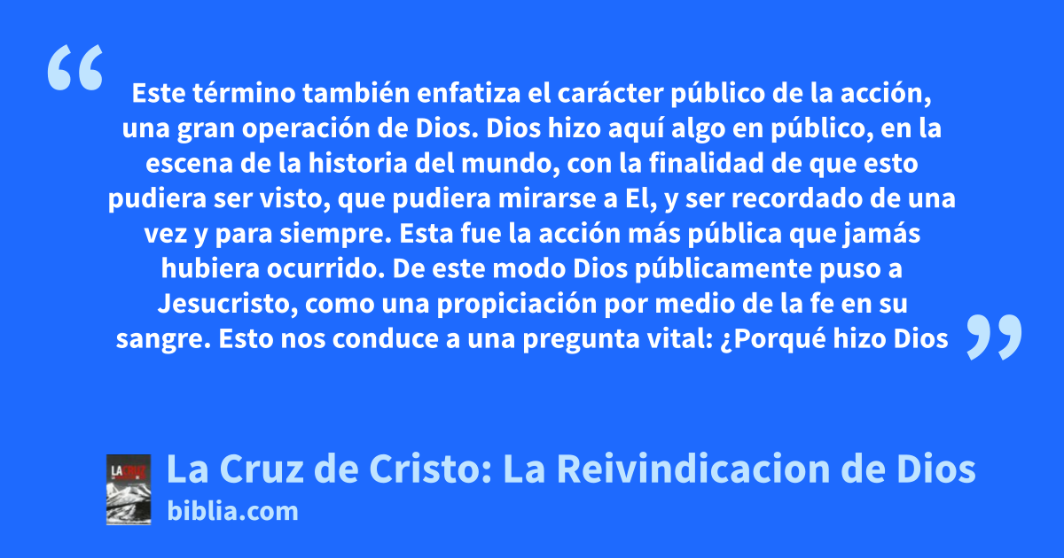 Las teorías tradicionales se conciernen solamente con los beneficios para el hombre, pero como se demuestra por el Dr. Lloyd-Jones en esta exposición de Romanos 3:25-26, la cruz de Cristo sobre todo era una reivindicación del carácter santo de Dios. Dice el Pastor Lloyd-Jones, “Este es una parte esencial del evangelio glorioso. En el calvario Dios hizo un camino de salvación para que usted y yo...