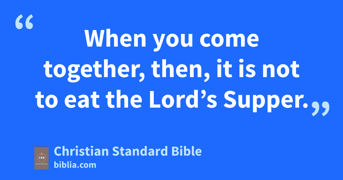 17 Now in giving this instruction I do not praise you, since you come together not for the better but for the worse. 18 For to begin with, I hear that when you come together as a church there are divisions among you, and in part I believe it. 19 Indeed, it is necessary that there be factionsr among you, so that those who are approved may be recognized among you. 20 When you come together, then, it is not to eat the Lord’s Supper.s 21 For at the meal, each one eats his own supper.C So one person is hungry while another gets drunk! 22 Don’t you have homes in which to eat and drink? Or do you despise the church of God and humiliate those who have nothing? What should I say to you? Should I praise you? I do not praise you in this matter!