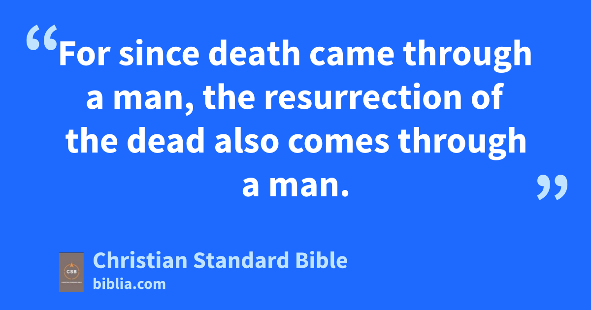 20 But as it is, Christ has been raised from the dead, the firstfruitsaa of those who have fallen asleep. 21 For since deathab came through a man,ac the resurrection of the dead also comes through a man.ad 22 For just as in Adam all die, so also in Christ all will be made alive.ae