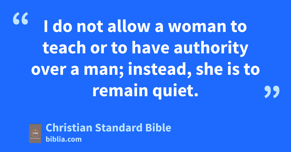 8 Therefore, I want the men in every place to pray, lifting up holy hands without anger or argument.bj 9 Also, the women are to dress themselves in modest clothing,a with decency and good sense, not with elaborate hairstyles, gold,b pearls, or expensive apparel, 10 but with good works,c as is proper for women who profess to worship God. 11 A woman is to learn quietly with full submission.d 12 I do not allow a woman to teach or to have authority over a man; instead, she is to remain quiet. 13 For Adam was formed first, then Eve.e 14 And Adam was not deceived, but the woman was deceived and transgressed.f 15 But she will be saved through childbearing, if they continue in faith, love, and holiness,g with good sense.