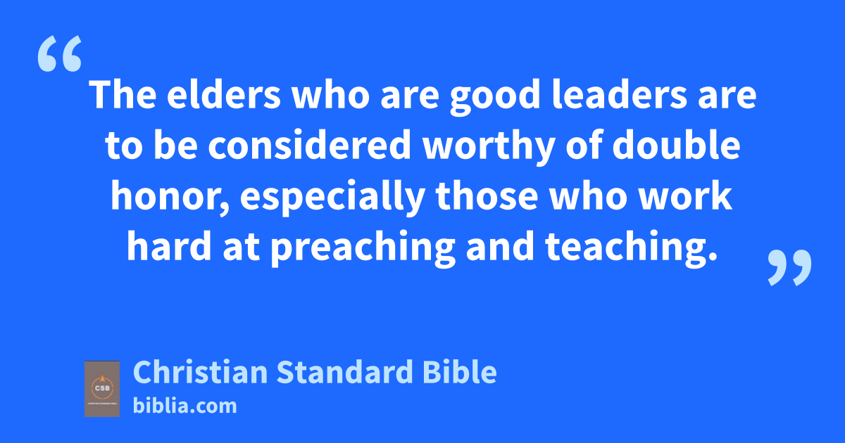 17 The elders who are good leaders are to be considered worthy of double honor,B especially those who work hardu at preaching and teaching. 18 For the Scripture says: Do not muzzle an ox while it is treading out the grain,C,v and, The worker is worthy of his wages.w