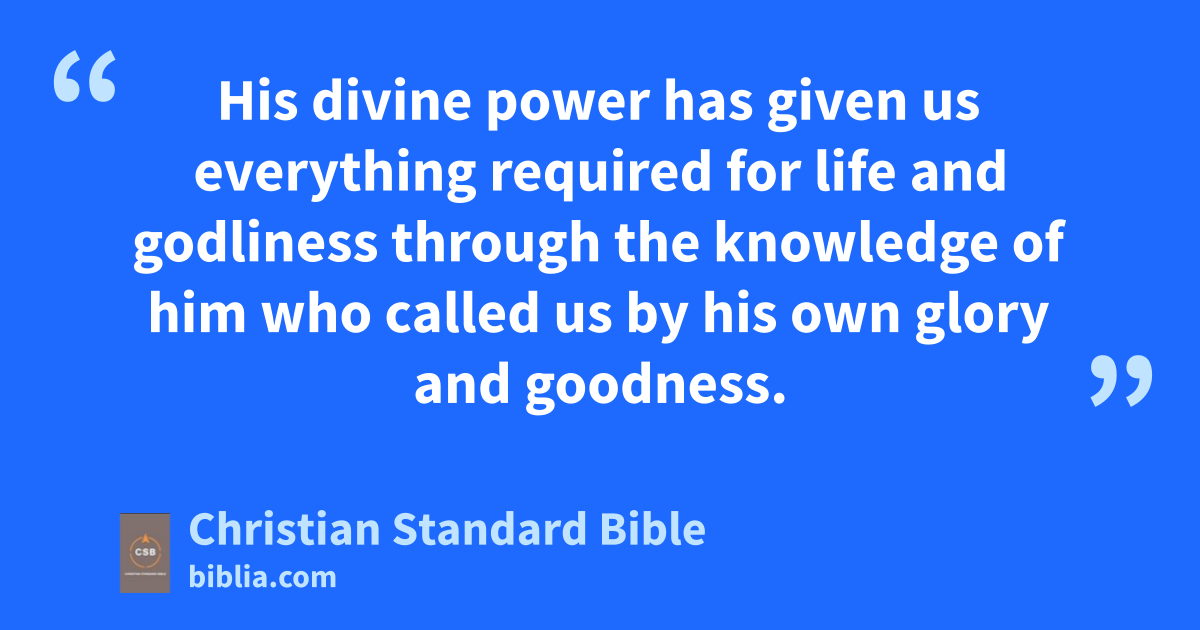 3 HisB divine powerf has given us everything required for life and godliness through the knowledgeg of him who calledh us byC his own glory and goodness. 4 By these he has given us very great and precious promises,i so that through them you may share in the divine nature,j escaping the corruption that is in the world because of evil desire. 5 For this very reason, make every effort to supplement your faith with goodness, goodness with knowledge, 6 knowledge with self-control,k self-control with endurance, endurance with godliness, 7 godliness with brotherly affection,l and brotherly affection with love. 8 For if you possess these qualities in increasing measure, they will keep you from being uselessm or unfruitfuln in the knowledge of our Lord Jesus Christ. 9 The person who lacks these things is blind and shortsighted and has forgotten the cleansing from his past sins. 10 Therefore, brothers and sisters, make every effort to confirm your calling and election,o because if you do these things you will never stumble. 11 For in this way, entry into the eternal kingdomp of our Lord and Savior Jesus Christ will be richly provided for you.