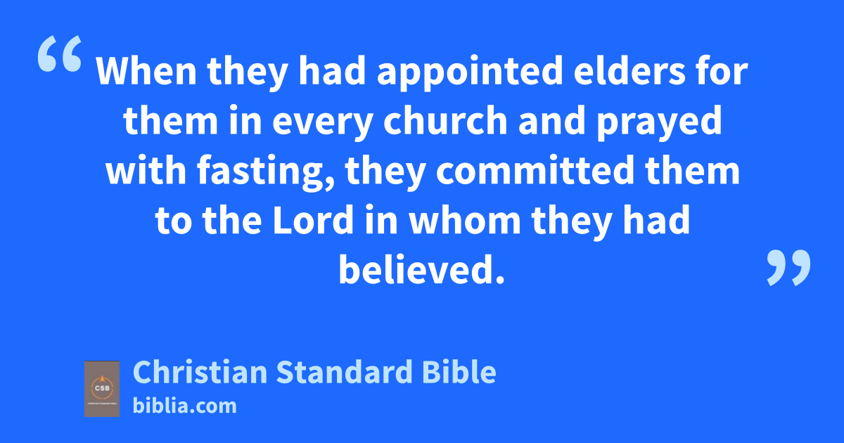 21 After they had preached the gospel in that town and made many disciples, they returned to Lystra, to Iconium, and to Antioch,v 22 strengthening theA disciples by encouraging them to continue in the faithw and by telling them, “It is necessary to go through many hardshipsx to enter the kingdom of God.” 23 When they had appointed eldersy for them in every church and prayed with fasting, they committed them to the Lord in whom they had believed.