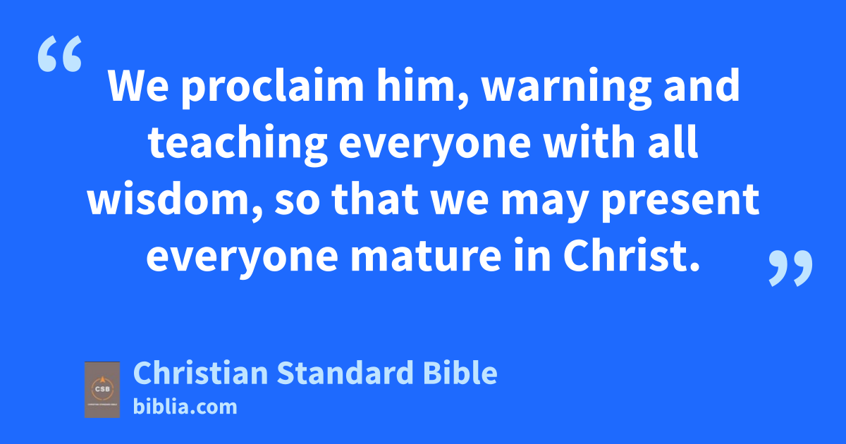 24 Now I rejoice in my sufferingsas for you, and I am completing in my flesh what is lacking in Christ’s afflictions for his body,at that is, the church. 25 I have become its servant, according to God’s commission that was given to me for you, to make the word of God fully known, 26 the mystery hidden for ages and generations but now revealed to his saints. 27 God wanted to make known among the Gentiles the glorious wealth of this mystery, which is Christa in you, the hopeb of glory. 28 We proclaim him, warning and teaching everyone with all wisdom, so that we may present everyone mature in Christ. 29 I labor for this, strivingc with his strength that works powerfully in me.d