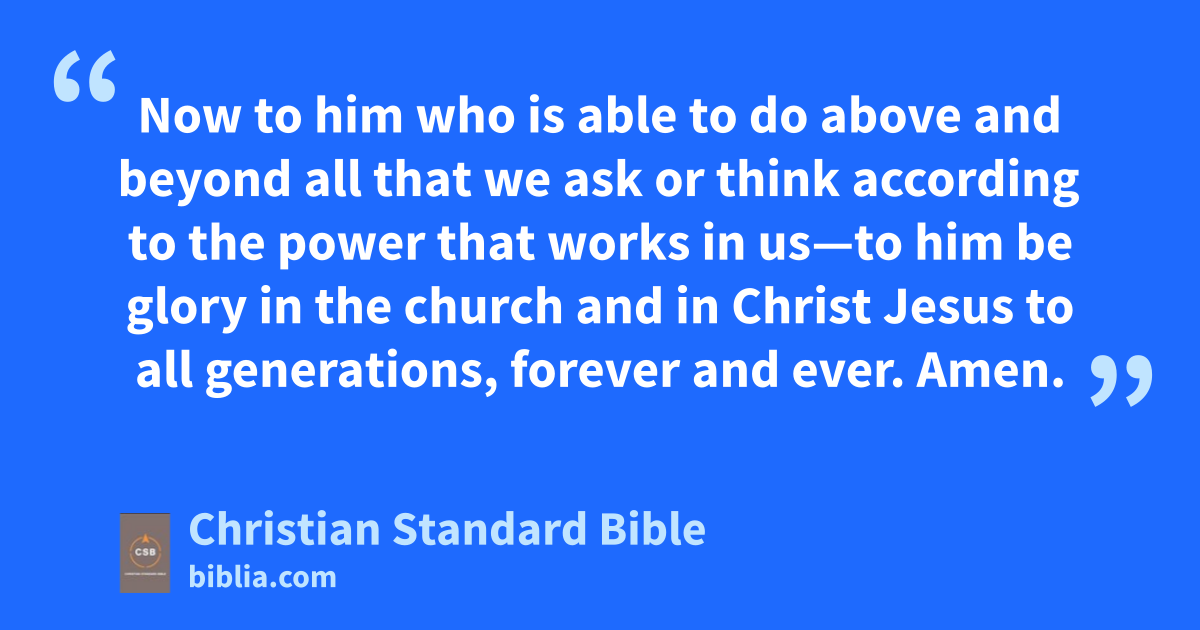 20 Now to him who is ableaq to do above and beyond all that we ask or thinkar according to the poweras that works in us—21 to him be glory in the church and in Christ Jesus to all generations, forever and ever. Amen.at