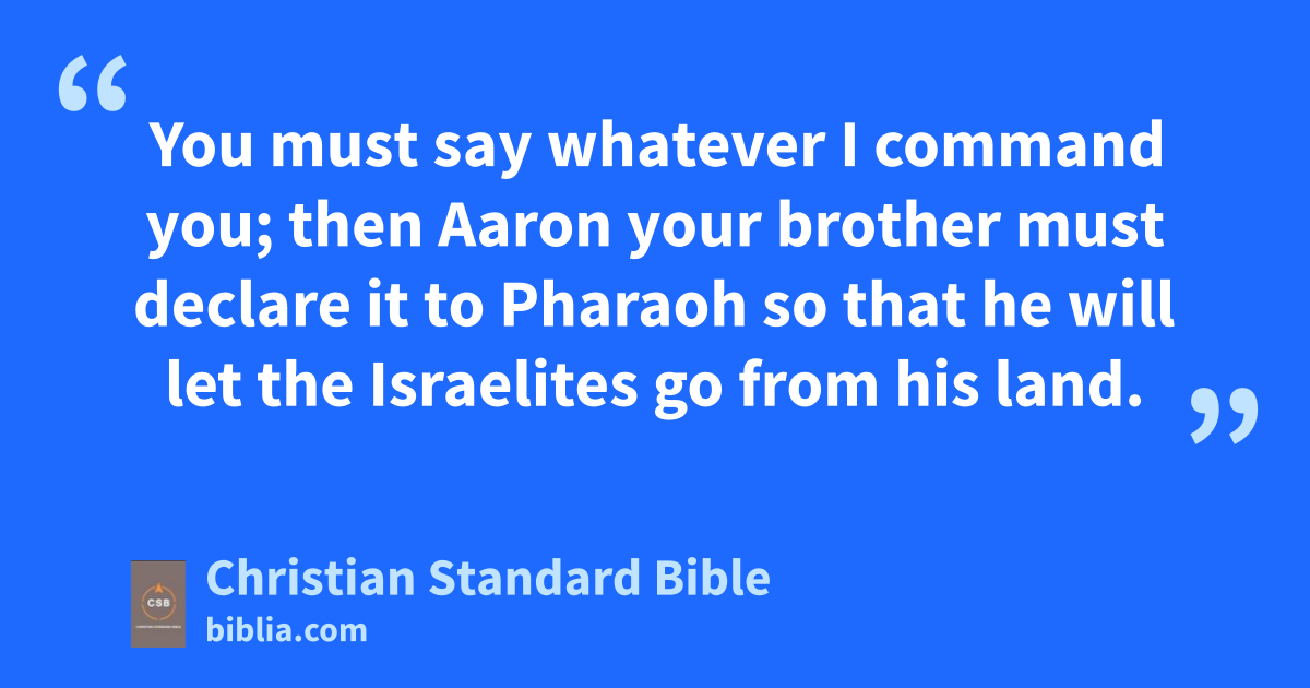 7 The Lord answered Moses, “See, I have made you like God to Pharaoh, and Aaron your brother will be your prophet. 2 You must say whatever I command you; then Aaron your brother must declare it to Pharaoh so that he will let the Israelites go from his land. 3 But I will harden Pharaoh’s heartx and multiply my signs and wonders in the land of Egypt. 4 Pharaoh will not listen to you, but I will put my hand into Egypt and bring the military divisions of my people the Israelites out of the land of Egypt by great acts of judgment. 5 The Egyptians will know that I am the Lorda when I stretch out my handb against Egypt and bring out the Israelites from among them.”