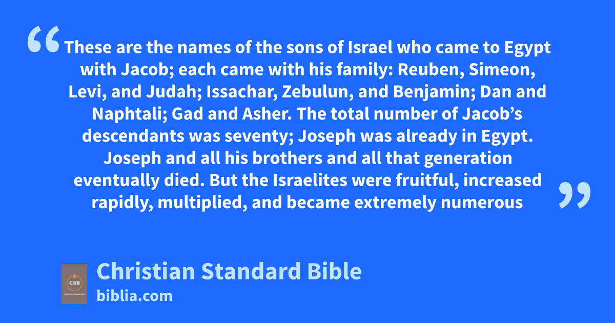 1 These are the names of the sons of Israel who came to Egypt with Jacob; each came with his family:a