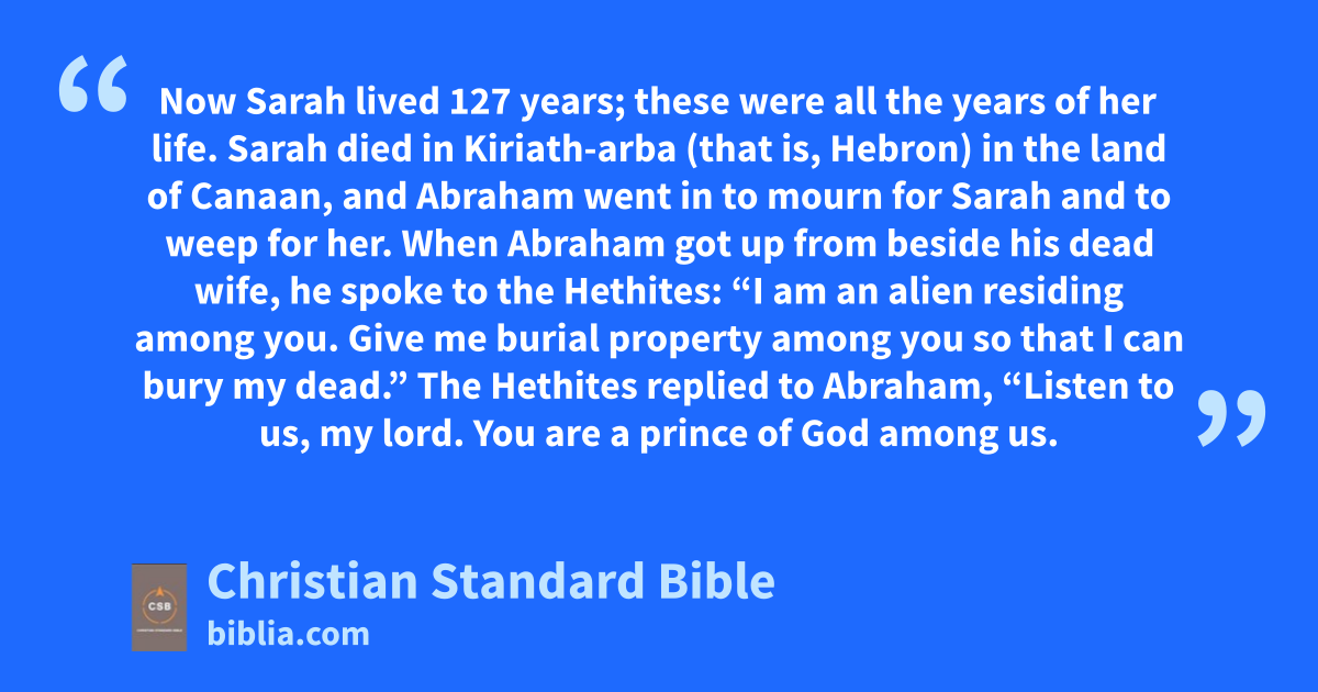23 Now Sarah lived 127 years; these were all the years of her life. 2 Sarah died in Kiriath-arba (that is, Hebronk) in the land of Canaan, and Abraham went in to mourn for Sarah and to weep for her.