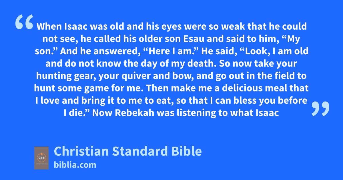 27 When Isaac was old and his eyes were so weak that he could not see,c he called his older son Esau and said to him, “My son.”