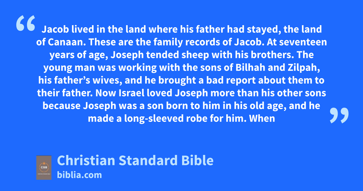 At seventeen years of age, Joseph tended sheep with his brothers. The young man was working with the sons of Bilhah and Zilpah, his father’s wives,d and he brought a bad report about them to their father.e
