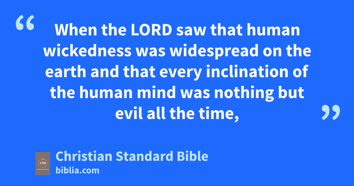 5 When the Lord saw that human wickedness was widespread on the earth and that every inclination of the human mind was nothing but evil all the time,e 6 the Lord regretted that he had made man on the earth,f and he was deeply grieved. 7 Then the Lord said, “I will wipe mankind, whom I created, off the face of the earth, together with the animals, creatures that crawl, and birds of the sky—for I regret that I made them.” 8 Noah, however, found favor with the Lord.g