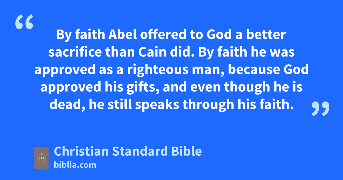 4 By faith Abel offered to God a better sacrifice than Cain did. By faith he was approved as a righteous man, because God approved his gifts, and even though he is dead, he still speaks through his faith.b