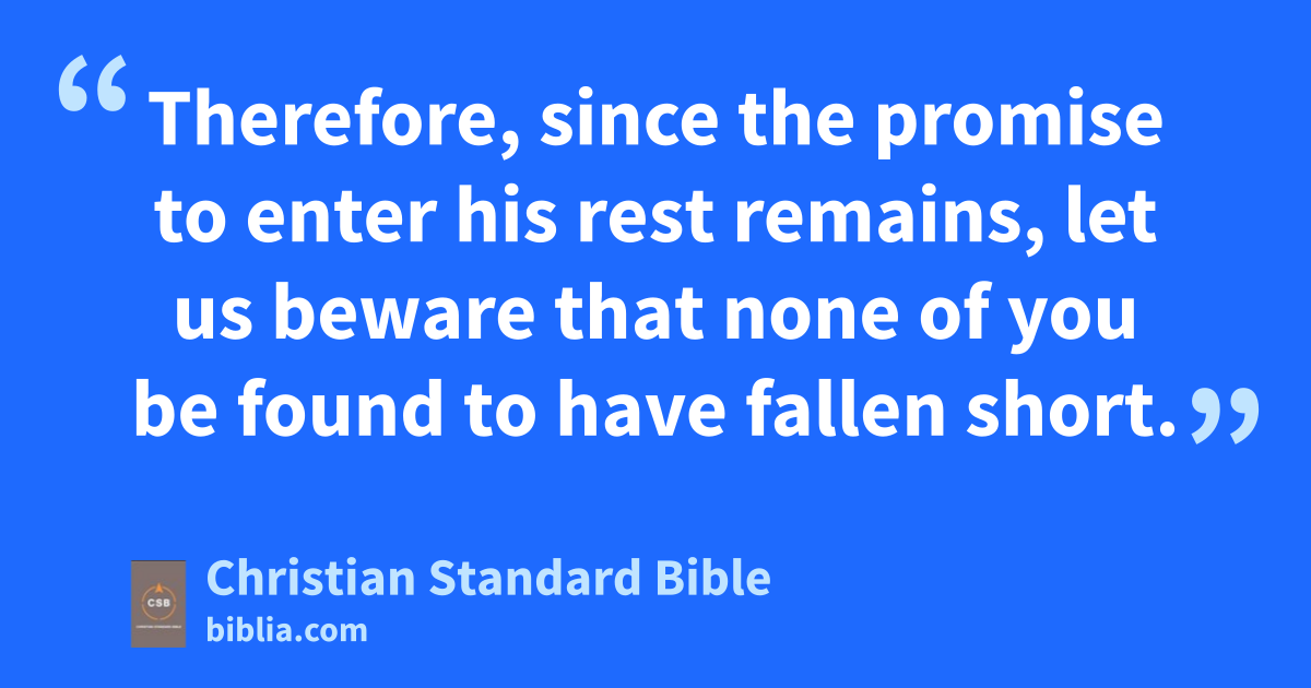 4 Therefore, since the promise to enter his rest remains, let us bewareE that none of you be found to have fallen short.F 2 For we also have received the good news just as they did. But the message they heard did not benefit them, since they were not united with those who heard it in faith.G,aa 3 For we who have believed enter the rest, in keeping with whatH he has said,