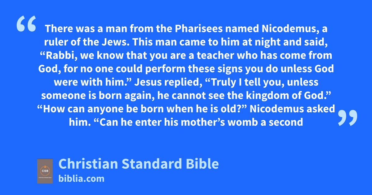 3 There was a man from the Phariseesl named Nicodemus,m a rulern of the Jews. 2 This man came to him at night and said, “Rabbi,o we know that you are a teacherp who has come from God,q for no one could perform these signs you do unless God were with him.”r