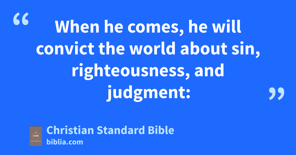 16 “I have told you these things to keep you from stumbling. 2 They will ban you from the synagogues.ad In fact, a time is coming when anyone who kills you will think he is offering serviceae to God. 3 They will do these things because they haven’t knownaf the Father or me. 4 But I have told you these things so that when their timeB comes you will rememberag I told them to you. I didn’t tell you these things from the beginning, because I was with you. 5 But now I am going awayah to him who sent me, and not one of you asks me, ‘Where are you going?’ai 6 Yet, because I have spoken these things to you, sorrow has filled your heart. 7 Nevertheless, I am telling you the truth.aj It is for your benefit that I go away, because if I don’t go away the Counselor will not come to you. If I go, I will send him to you.ak 8 When he comes, he will convict the world about sin, righteousness, and judgment: 9 About sin, because they do not believe in me; 10 about righteousness, because I am going to the Fatheral and you will no longer see me; 11 and about judgment,am because the ruler of this worldan has been judged.ao