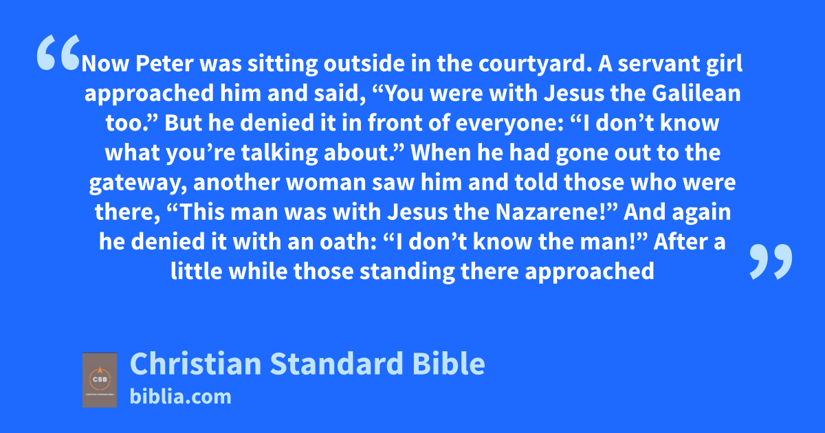 74 Then he started to curse and to swear with an oath, “I don’t know the man!” Immediately a rooster crowed, 75 and Peter remembered the words Jesus had spoken, “Before the rooster crows, you will deny me three times.”c And he went outside and wept bitterly.