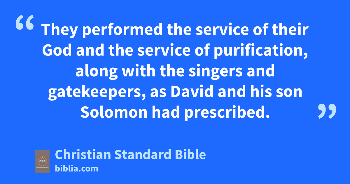 44 On that same day men were placed in charge of the roomsj that housed the supplies, contributions, firstfruits, and tenths.k The legally required portions for the priests and Levitesl were gathered from the village fields, because Judah was grateful to the priests and Levites who were serving.m 45 They performed the service of their God and the service of purification, along with the singers and gatekeepers,n as David and his son Solomon had prescribed.o 46 For long ago, in the days of David and Asaph,p there were headsA of the singers and songs of praise and thanksgiving to God.q 47 So in the days of Zerubbabelr and Nehemiah,s all Israel contributed the daily portionst for the singers and gatekeepers. They also set aside daily portions for the Levites, and the Levites set aside daily portionsu for Aaron’s descendants.
