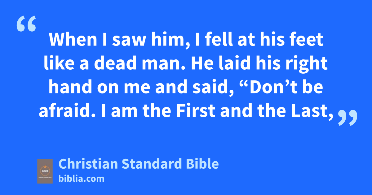 17 When I saw him, I fell at his feet like a dead man.al He laid his right hand on me and said, “Don’t be afraid. I am the First and the Last,am 18 and the Living One.an I was dead, but look—I am alive forever and ever,ao and I hold the keysap of death and Hades. 19 Therefore write what you have seen,aq what is, and what will take place after this. 20 The mysteryar of the seven stars you saw in my right hand and of the seven golden lampstands is this: The seven stars are the angelsA of the seven churches, and the seven lampstandsB are the seven churches.as