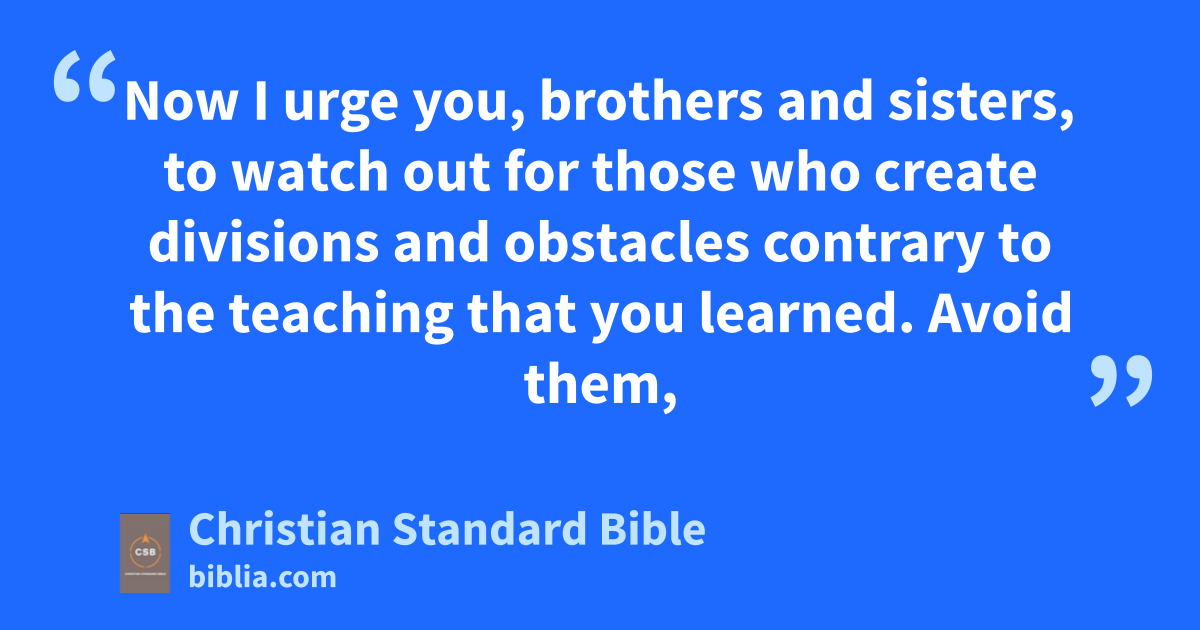 17 Now I urge you, brothers and sisters, to watch out for those who create divisions and obstacles contrary to the teaching that you learned.g Avoid them,h 18 because such people do not serve our Lord Christi but their own appetites.H,j They deceive the hearts of the unsuspecting with smooth talk and flattering words.k