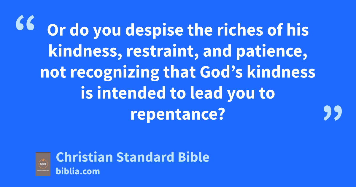 2 Therefore, every one of youI,g who judges is without excuse.h For when you judge another,i you condemn yourself, since you, the judge, do the same things. 2 Now we know that God’s judgment on those who do such things is based on the truth. 3 Do you think—anyone of you who judges those who do such things yet do the same—that you will escape God’s judgment? 4 Or do you despise the riches of his kindness,j restraint,k and patience,l not recognizingJ that God’s kindnessm is intended to lead you to repentance? 5 Because of your hardened and unrepentant heart you are storing up wrathn for yourself in the day of wrath,o when God’s righteous judgment is revealed. 6 He will repay each one according to his works:K,p 7 eternal lifeq to those who by persistence in doing goodr seek glory, honor,s and immortality;t 8 but wrath and anger to those who are self-seekingu and disobey the truthv while obeying unrighteousness. 9 There will be affliction and distressw for every human being who does evil, first to the Jew, and also to the Greek;x 10 but glory, honor, and peace for everyone who does what is good, first to the Jew, and also to the Greek. 11 For there is no favoritism with God.y