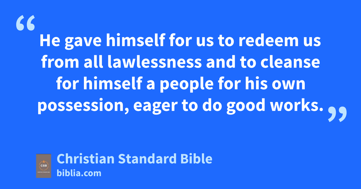 11 For the grace of God has appeared, bringing salvationB for all people,aq 12 instructing us to deny godlessnessar and worldly lustsas and to live in a sensible, righteous,at and godlyau way in the present age, 13 while we wait for the blessed hope,av the appearing of the gloryaw of our great God and Savior, Jesus Christ. 14 He gave himself for usax to redeem us from all lawlessness and to cleanse for himself a people for his own possession,ay eager to do good works.