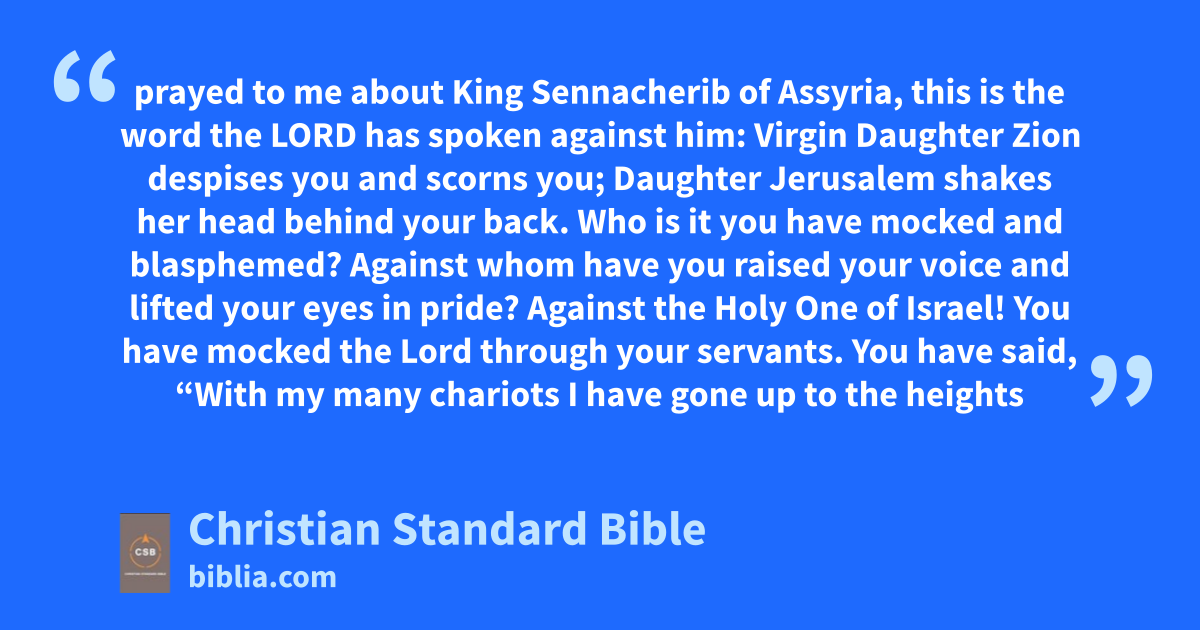21 Then Isaiah son of Amoz sent a message to Hezekiah: “The Lord, the God of Israel, says, ‘Because you prayed to me about King Sennacherib of Assyria, 22 this is the word the Lord has spoken against him: