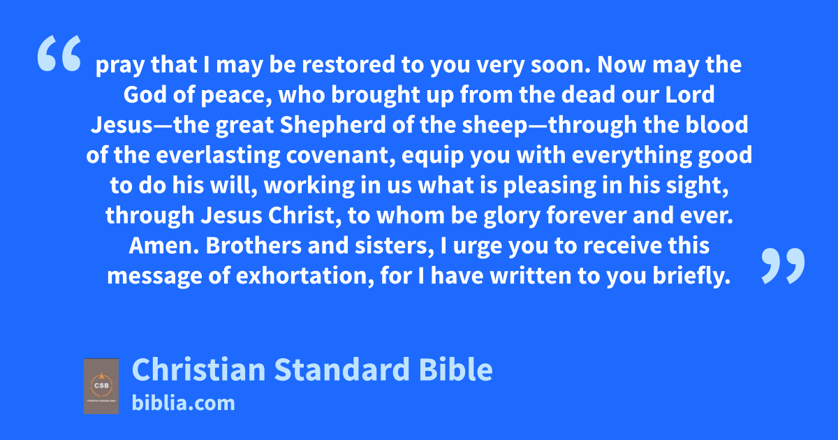 20 Now may the God of peace, who brought up from the dead our Lord Jesus—the great Shepherd of the sheepw—through the blood of the everlasting covenant,x 21 equipD you with everything good to do his will, working in us what is pleasing in his sight, through Jesus Christ, to whom be glory forever and ever.E,y Amen.