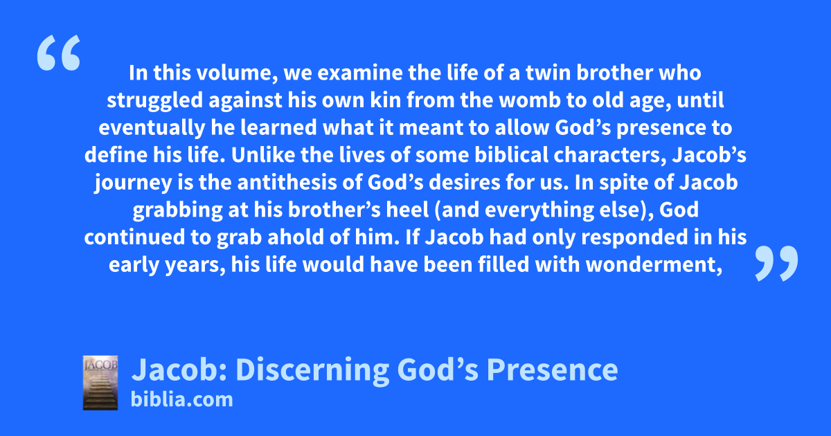 In this volume, we examine the life of a twin brother who struggled against his own kin from the womb to old age, until eventually he learned what it meant to allow God’s presence to define his life. Unlike the lives of some biblical characters, Jacob’s journey is the antithesis of God’s desires for us. In spite of Jacob grabbing at his brother’s heel (and everything else), God continued to grab ahold of him. If Jacob had only responded in his early years, his life would have been filled with wonderment,