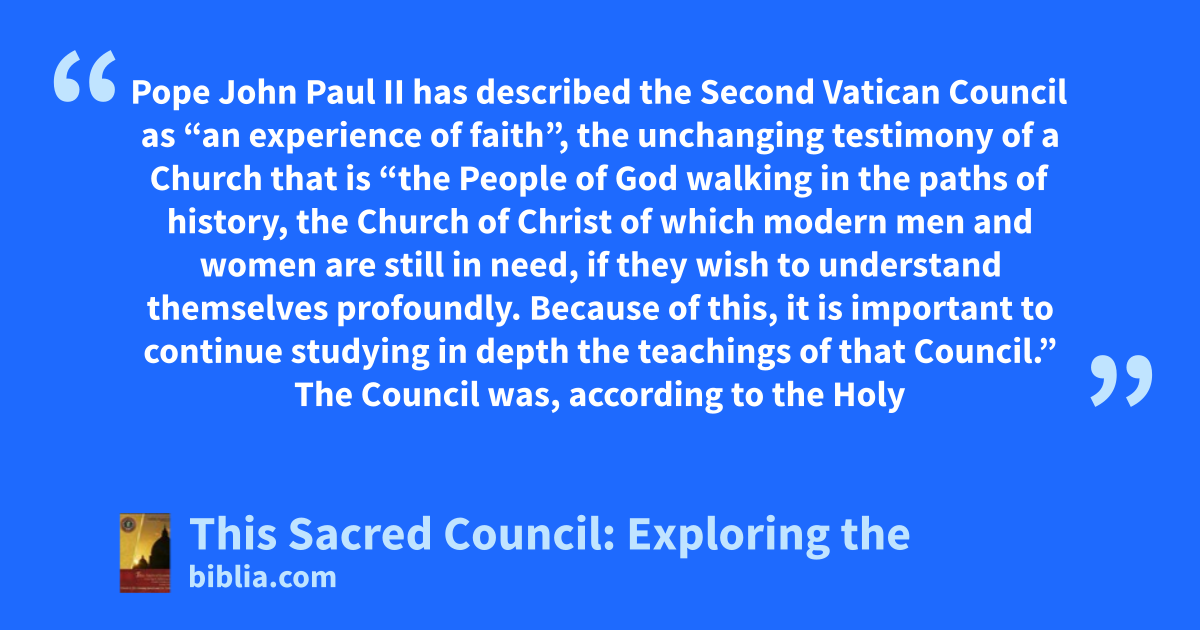 Pope John XXIII’s opening speech laid the foundation for the Council and addressed the questions such as why the Council had been called, what goals the Council Fathers were to achieve, and the relationship to past councils. The Opening Address provides valuable insight into the “mind of the Church.” Dei Verbum, the Word of God, presents Church teaching concerning the ways God has revealed...