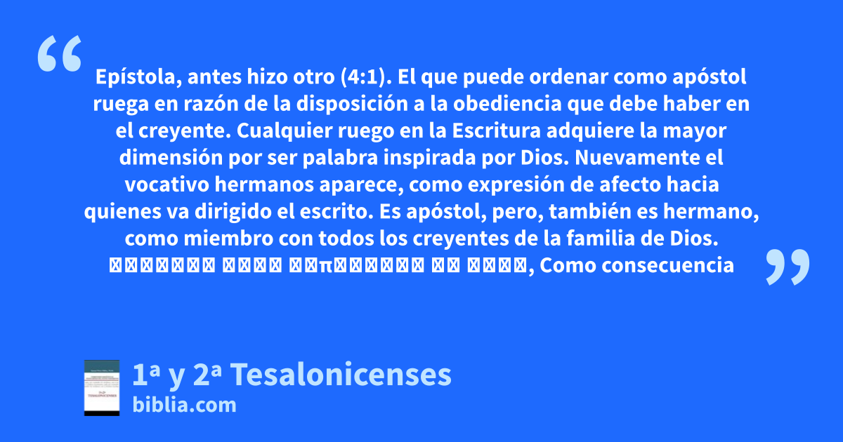 Epístola, antes hizo otro (4:1). El que puede ordenar como apóstol ruega en razón de la disposición a la obediencia que debe haber en el creyente. Cualquier ruego en la Escritura adquiere la mayor dimensión por ser palabra inspirada por Dios. Nuevamente el vocativo hermanos aparece, como expresión de afecto hacia quienes va dirigido el escrito. Es apóstol, pero, también es hermano, como miembro con todos los creyentes de la familia de Dios. εἰδέναι τοὺς κοπιῶντας ἐν ὑμῖν, Como consecuencia