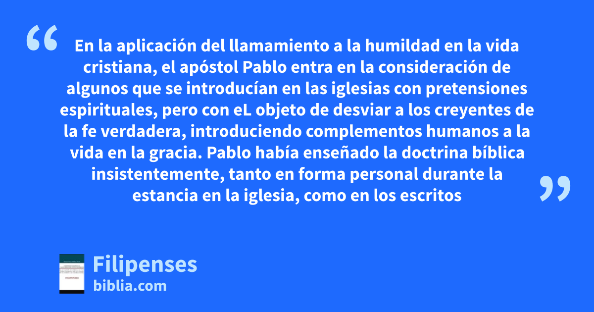 En la aplicación del llamamiento a la humildad en la vida cristiana, el apóstol Pablo entra en la consideración de algunos que se introducían en las iglesias con pretensiones espirituales, pero con eL objeto de desviar a los creyentes de la fe verdadera, introduciendo complementos humanos a la vida en la gracia. Pablo había enseñado la doctrina bíblica insistentemente, tanto en forma personal durante la estancia en la iglesia, como en los escritos