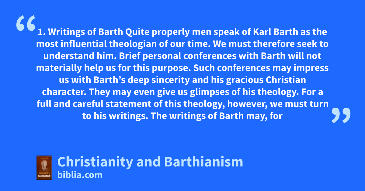 Van Til writes in the Preface, “The present writer is of the opinion that, for all its verbal similarity to historic Protestantism, Barth’s theology is, in effect, a denial of it. There is, he believes, in Barth’s view no ‘transition from wrath to grace’ in history. This was the writer’s opinion in 1946 when he published The New Modernism. A careful consideration of Barth’s more recent writings...