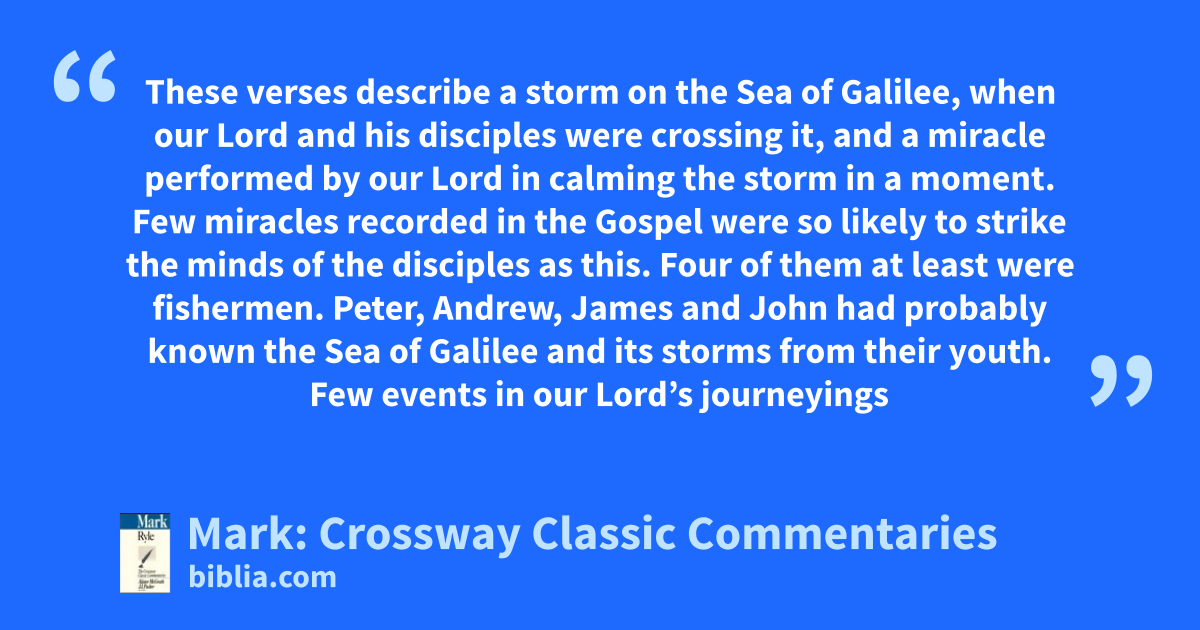 These verses describe a storm on the Sea of Galilee, when our Lord and his disciples were crossing it, and a miracle performed by our Lord in calming the storm in a moment. Few miracles recorded in the Gospel were so likely to strike the minds of the disciples as this. Four of them at least were fishermen. Peter, Andrew, James and John had probably known the Sea of Galilee and its storms from their youth. Few events in our Lord’s journeyings