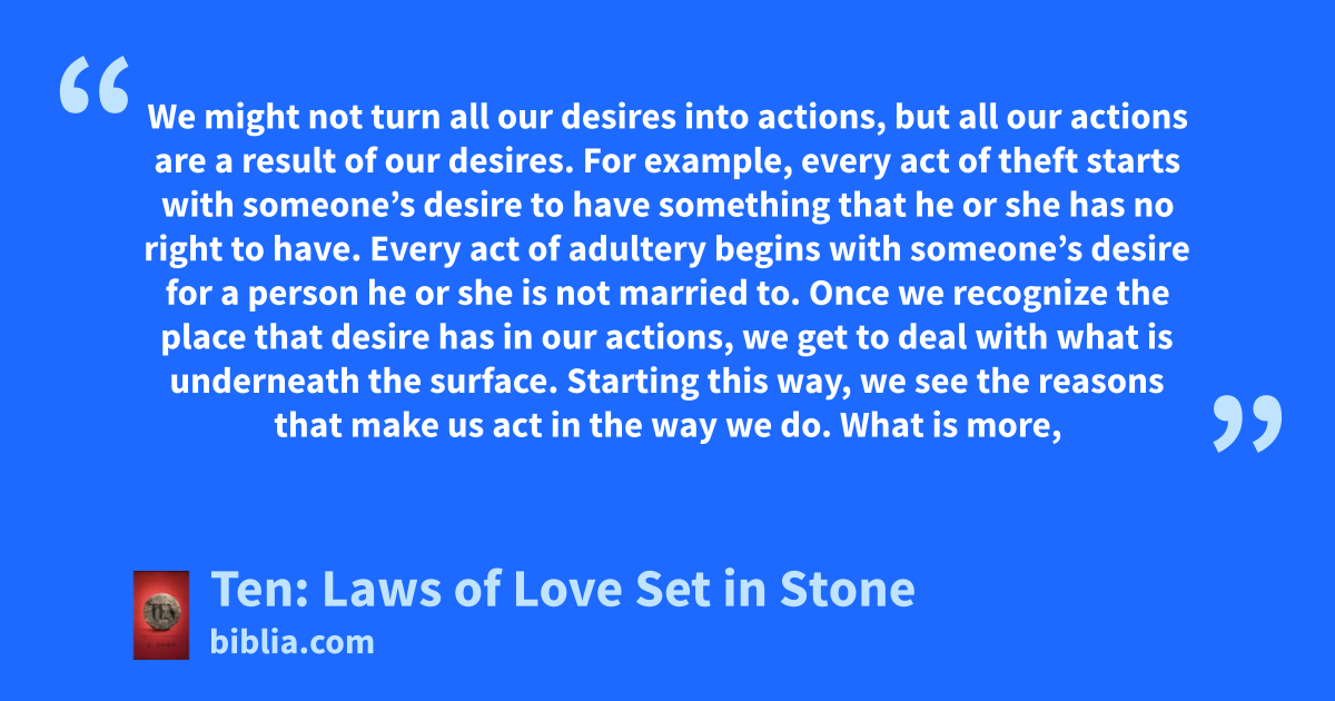 We might not turn all our desires into actions, but all our actions are a result of our desires. For example, every act of theft starts with someone’s desire to have something that he or she has no right to have. Every act of adultery begins with someone’s desire for a person he or she is not married to. Once we recognize the place that desire has in our actions, we get to deal with what is underneath the surface. Starting this way, we see the reasons that make us act in the way we do. What is more,