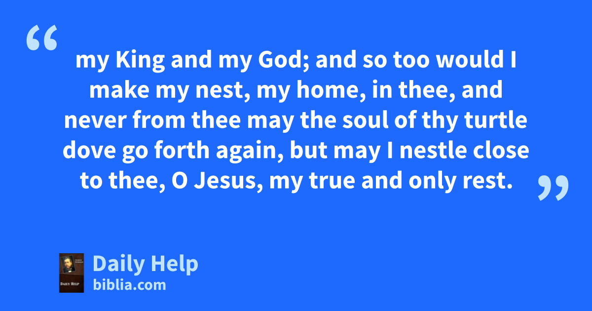 my King and my God; and so too would I make my nest, my home, in thee, and never from thee may the soul of thy turtle dove go forth again, but may I nestle close to thee, O Jesus, my true and only rest.