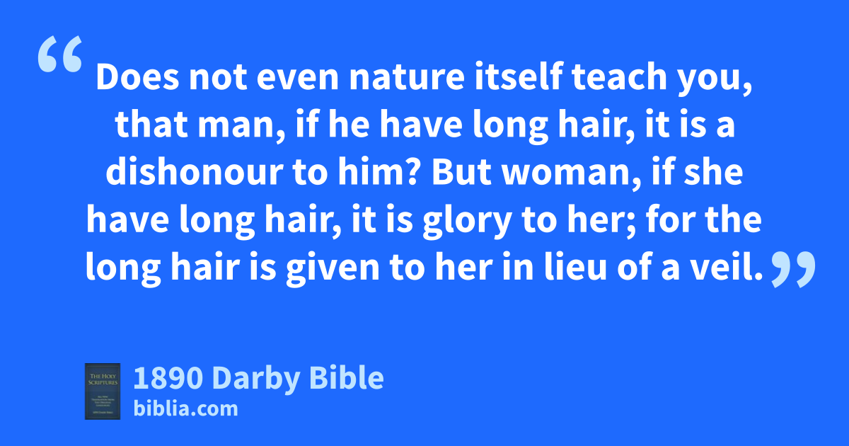 1 Be my imitators, even as I also am of Christ. 2 Now I praise you, that in all things ye are mindful of me; and that as I have directed you, ye keep the directions. 3 But I wish you to know that the Christ is the head of every man, but woman’s head is the man, and the Christ’s head God. 4 Every man praying or prophesying, having anything on his head, puts his head to shame. 5 But every woman praying or prophesying with her head uncovered puts her own head to shame; for it is one and the same as a shaved woman. 6 For if a woman be not covered, let her hair also be cut off. But if it be shameful to a woman to have her hair cut off or to be shaved, let her be covered. 7 For man indeed ought not to have his head covered, being God’s image and glory; but woman is man’s glory. 8 For man is not of woman, but woman of man. 9 For also man was not created for the sake of the woman, but woman for the sake of the man. 10 Therefore ought the woman to have authority on her head, on account of the angels. 11 However, neither is woman without man, nor man without woman, in the Lord. 12 For as the woman is of the man, so also is the man by the woman, but all things of God. 13 Judge in yourselves: is it comely that a woman should pray to God uncovered? 14 Does not even nature itself teach you, that man, if he have long hair, it is a dishonour to him? 15 But woman, if she have long hair, it is glory to her; for the long hair is given to her in lieu of a veil. 16 But if any one think to be contentious, we have no such custom, nor the assemblies of God.