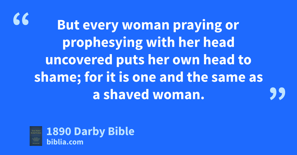1 Be my imitators, even as I also am of Christ. 2 Now I praise you, that in all things ye are mindful of me; and that as I have directed you, ye keep the directions. 3 But I wish you to know that the Christ is the head of every man, but woman’s head is the man, and the Christ’s head God. 4 Every man praying or prophesying, having anything on his head, puts his head to shame. 5 But every woman praying or prophesying with her head uncovered puts her own head to shame; for it is one and the same as a shaved woman. 6 For if a woman be not covered, let her hair also be cut off. But if it be shameful to a woman to have her hair cut off or to be shaved, let her be covered. 7 For man indeed ought not to have his head covered, being God’s image and glory; but woman is man’s glory. 8 For man is not of woman, but woman of man. 9 For also man was not created for the sake of the woman, but woman for the sake of the man. 10 Therefore ought the woman to have authority on her head, on account of the angels. 11 However, neither is woman without man, nor man without woman, in the Lord. 12 For as the woman is of the man, so also is the man by the woman, but all things of God. 13 Judge in yourselves: is it comely that a woman should pray to God uncovered? 14 Does not even nature itself teach you, that man, if he have long hair, it is a dishonour to him? 15 But woman, if she have long hair, it is glory to her; for the long hair is given to her in lieu of a veil. 16 But if any one think to be contentious, we have no such custom, nor the assemblies of God.