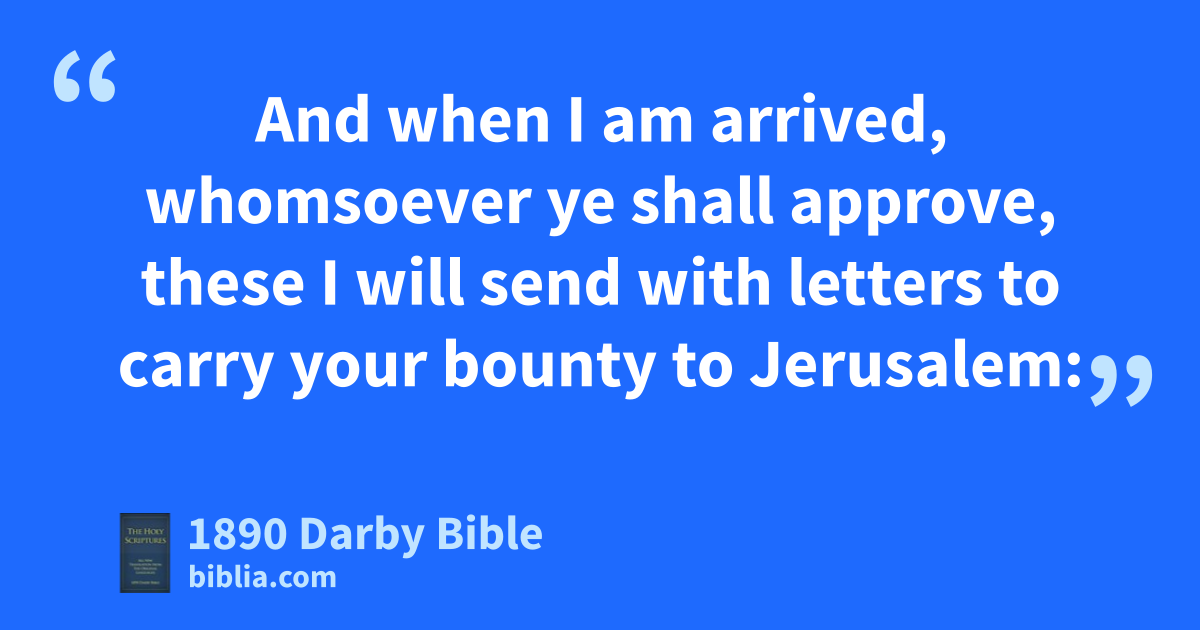 1 Now concerning the collection for the saints, as I directed the assemblies of Galatia, so do ye do also. 2 On the first of the week let each of you put by at home, laying up in whatever degree he may have prospered, that there may be no collections when I come. 3 And when I am arrived, whomsoever ye shall approve, these I will send with letters to carry your bounty to Jerusalem: 4 and if it be suitable that I also should go, they shall go with me.