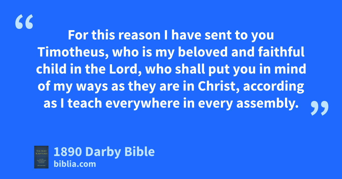 17 For this reason I have sent to you Timotheus, who is my beloved and faithful child in the Lord, who shall put you in mind of my ways as they are in Christ, according as I teach everywhere in every assembly. 18 But some have been puffed up, as if I were not coming to you; 19 but I will come quickly to you, if the Lord will; and I will know, not the word of those that are puffed up, but the power. 20 For the kingdom of God is not in word, but in power. 21 What will ye? that I come to you with a rod; or in love, and in a spirit of meekness?