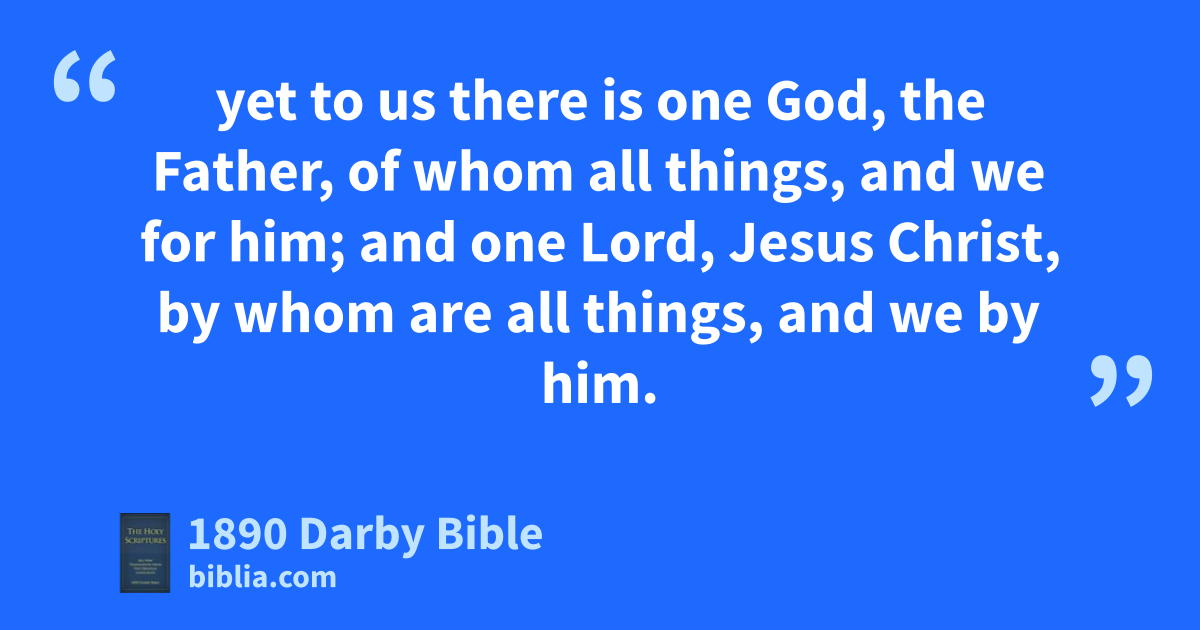 4 —concerning then the eating of things sacrificed to idols, we know that an idol is nothing in the world, and that there is no other God save one. 5 For and if indeed there are those called gods, whether in heaven or on earth, (as there are gods many, and lords many,) 6 yet to us there is one God, the Father, of whom all things, and we for him; and one Lord, Jesus Christ, by whom are all things, and we by him.