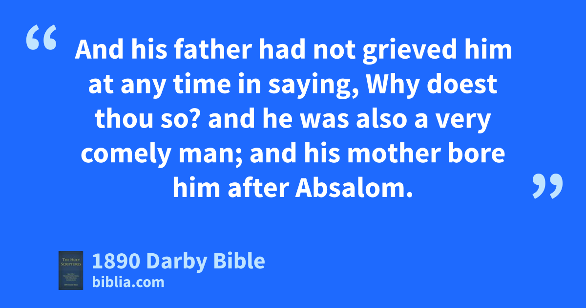 5 And Adonijah the son of Haggith exalted himself, saying, I will be king; and he provided himself chariots and horsemen, and fifty men to run before him. 6 And his father had not grieved him at any time in saying, Why doest thou so? and he was also a very comely man; and his mother bore him after Absalom. 7 And he conferred with Joab the son of Zeruiah, and with Abiathar the priest; and they helped Adonijah and followed him. 8 But Zadok the priest, and Benaiah the son of Jehoiada, and Nathan the prophet, and Shimei, and Rei, and the mighty men whom David had, were not with Adonijah. 9 And Adonijah sacrificed sheep and oxen and fatted cattle by the stone of Zoheleth, which is by En-rogel, and invited all his brethren, the king’s sons, and all the men of Judah, the king’s servants; 10 but Nathan the prophet, and Benaiah, and the mighty men, and Solomon his brother, he did not invite.