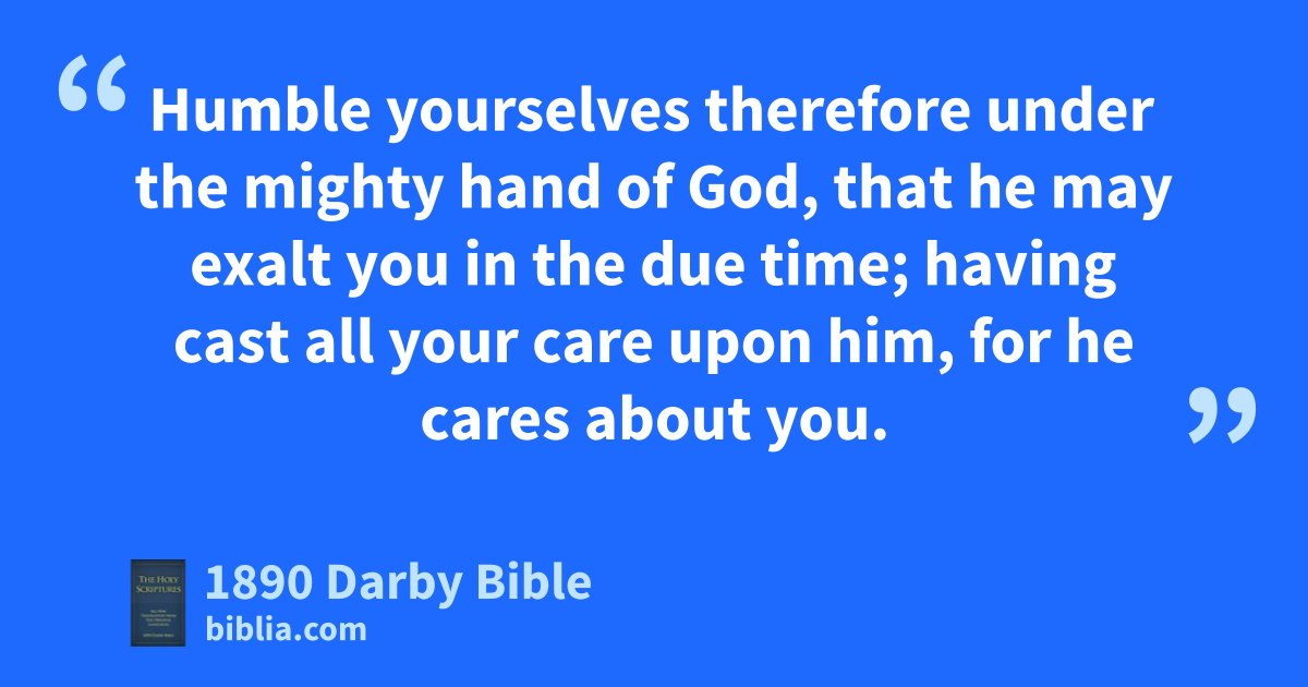 5 Likewise ye younger, be subject to the elder, and all of you bind on humility towards one another; for God sets himself against the proud, but to the humble gives grace. 6 Humble yourselves therefore under the mighty hand of God, that he may exalt you in the due time; 7 having cast all your care upon him, for he cares about you.