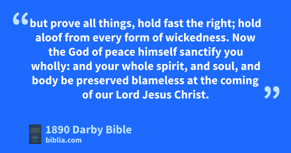 16 rejoice always; 17 pray unceasingly; 18 in everything give thanks, for this is the will of God in Christ Jesus towards you; 19 quench not the Spirit; 20 do not lightly esteem prophecies; 21 but prove all things, hold fast the right; 22 hold aloof from every form of wickedness.