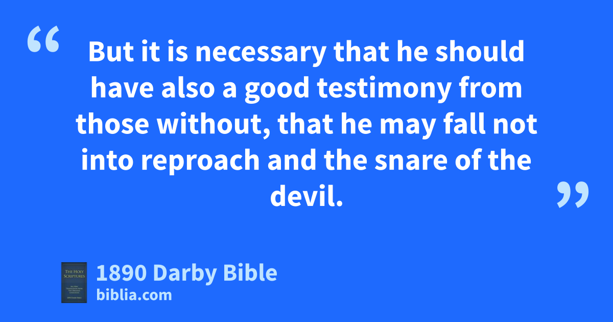 1 The word is faithful: if any one aspires to exercise oversight, he desires a good work. 2 The overseer then must be irreproachable, husband of one wife, sober, discreet, decorous, hospitable, apt to teach; 3 not given to excesses from wine, not a striker, but mild, not addicted to contention, not fond of money, 4 conducting his own house well, having his children in subjection with all gravity; 5 (but if one does not know how to conduct his own house, how shall he take care of the assembly of God?) 6 not a novice, that he may not, being inflated, fall into the fault of the devil. 7 But it is necessary that he should have also a good testimony from those without, that he may fall not into reproach and the snare of the devil.