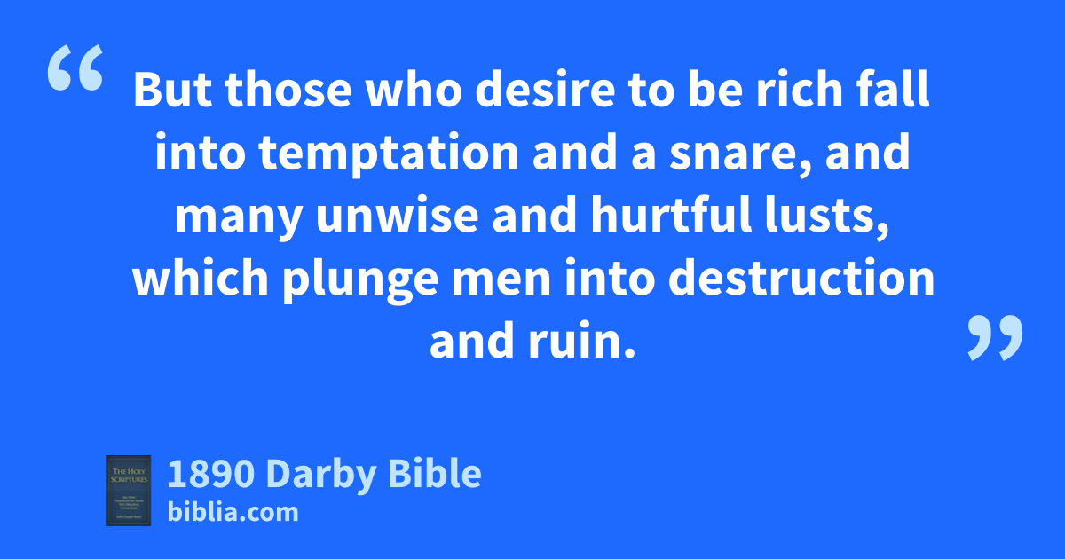 6 But piety with contentment is great gain. 7 For we have brought nothing into the world: it is manifest that neither can we carry anything out. 8 But having sustenance and covering, we will be content with these. 9 But those who desire to be rich fall into temptation and a snare, and many unwise and hurtful lusts, which plunge men into destruction and ruin. 10 For the love of money is the root of every evil; which some having aspired after, have wandered from the faith, and pierced themselves with many sorrows. 11 But thou, O man of God, flee these things, and pursue righteousness, piety, faith, love, endurance, meekness of spirit. 12 Strive earnestly in the good conflict of faith. Lay hold of eternal life, to which thou hast been called, and hast confessed the good confession before many witnesses.