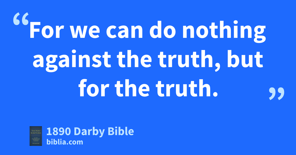 7 But we pray to God that ye may do nothing evil; not that we may appear approved, but that ye may do what is right, and we be as reprobates. 8 For we can do nothing against the truth, but for the truth. 9 For we rejoice when we may be weak and ye may be powerful. But this also we pray for, your perfecting. 10 On this account I write these things being absent, that being present I may not use severity according to the authority which the Lord has given me for building up, and not for overthrowing.